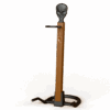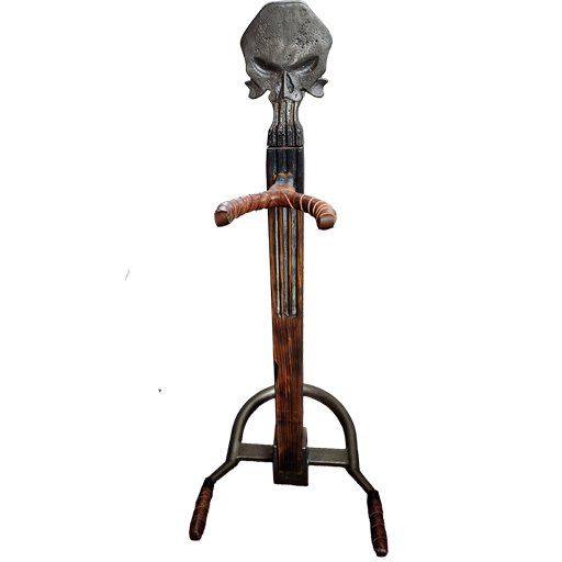 Bold and sturdy. Made from cast iron, wood, and leather this stand will last generations. Handmade in America.